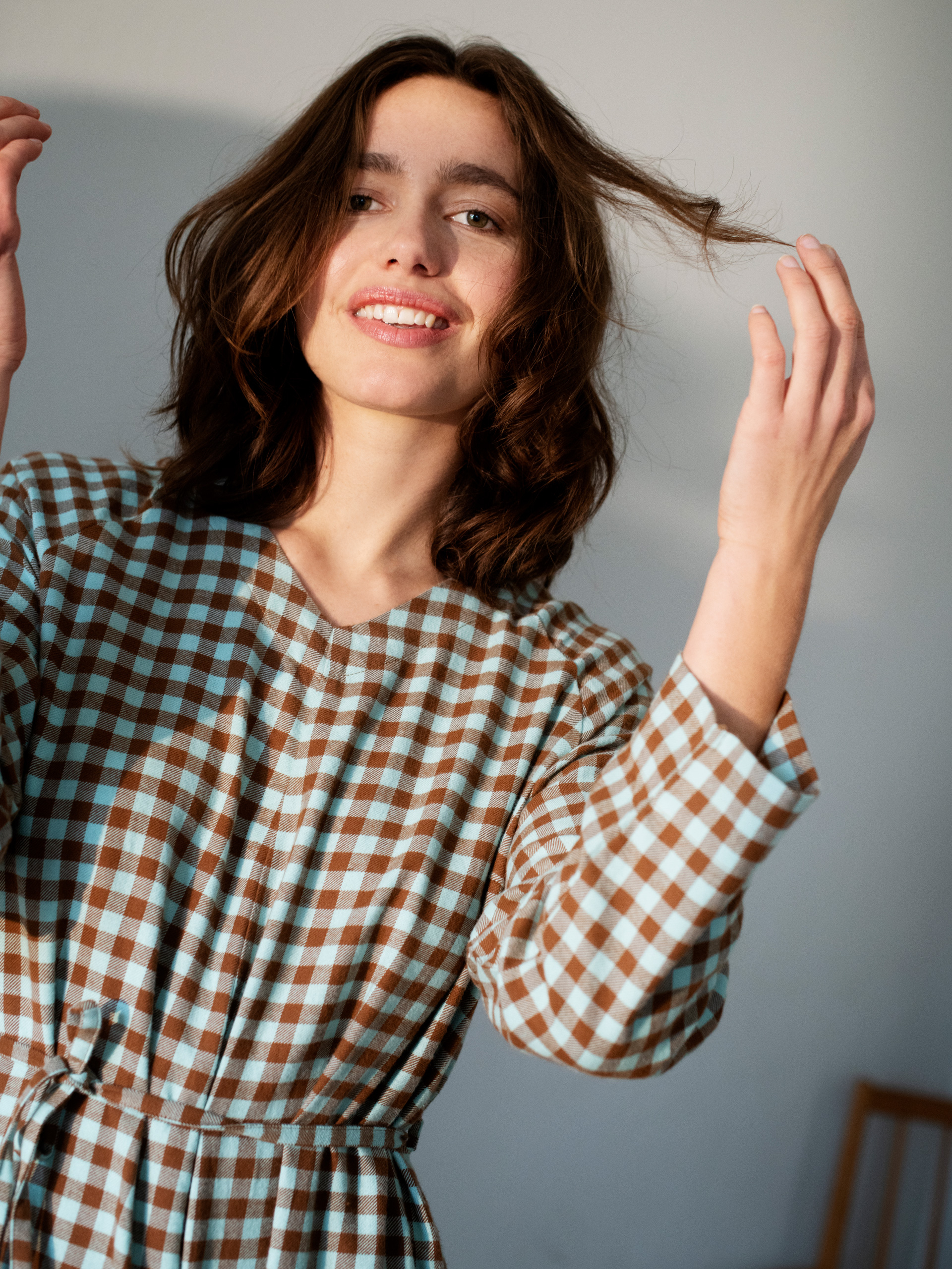 Colour category (-ies): Brown + Blue + Checkered
